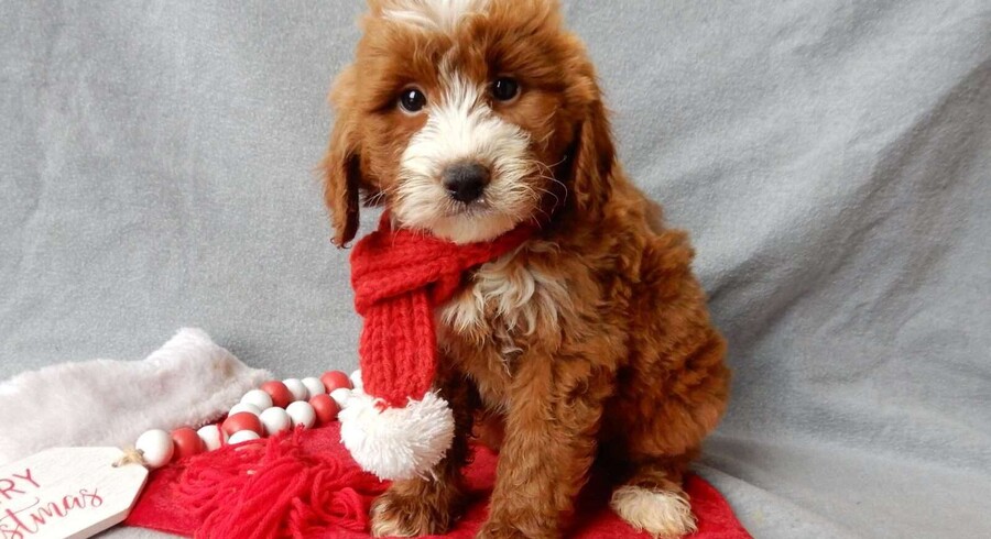 Prepare to fall in love!! I have the sweetest little mini goldendoodle face you have ever seen… My name is Rusty and I would love to come home with you! I am sure with one look into my warm, sweet eyes and I’ll be sure I will have captured your heart already! I am very happy, playful and very kid friendly! I stand out above the rest with my beautiful red coat with white markings!! Full of personality and always ready to give amazing puppy kisses, I would love to fill your home with all of my puppy love! I have been vet checked and I am up to date on vaccinations and dewormings and I will also come with a 1-year guarantee with the option of extending it to a 3-year guarantee. Shipping is available anywhere in the USA! My mother is Willow, our sweet 28# mini goldendoodle, and my father is Atlas, our handsome 16# AKC red miniature poodle and Atlas is also genetically tested clear! That makes me an F1b mini goldendoodle and I will grow to approx. 18-24# and I will be hypoallergenic and nonshedding!! Why wait when you know I am meant to be yours? Call or text Martha to make me the newest addition to your family and get ready to spend a lifetime of tail wagging fun! (7% sales tax on in home pickups)