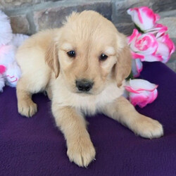 Hi, I'm Sally! I'm an 8-week-old female Golden Retriever with a beautiful light golden coat, born on January 13. I am ready now to plan my trip to my forever family. Once I reach my adult size, I'm expected to weigh between 45–75 lbs. I'm AKC registered. I'm excited to be your loyal companion and cuddle buddy.