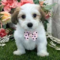 Hi, I'm Trouble! I'm a 9-week-old male Havaton. My dad is a Havanese and my mom is a Coton de Tulear. I have a beautiful sable & white coat, and I was born on January 19. I am ready now to plan my trip to my forever family. Once I reach my adult size, I'm expected to weigh between 10–16 lbs. My mission: to make you smile every single day.