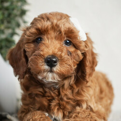 Hi, I'm Remi! I'm a 10-week-old female Goldendoodle. My dad is a Poodle and my mom is a Goldendoodle. I have a beautiful red coat, and I was born on January 13. I am ready now to plan my trip to my forever family. I can't wait to bring my wagging tail and loving heart to your home.