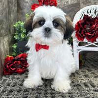 Hi, I'm Pookie! I'm a 16-week-old male Shih Tzu with a beautiful brindle & white coat, born on December 14. I am ready now to plan my trip to my forever family. Once I reach my adult size, I'm expected to weigh between 8–14 lbs. I'm AKC registered. I'm a little ball of fluff with a big personality.