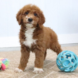 Hi, I'm Marla! I'm a 10-week-old female Goldendoodle. My dad is a Poodle and my mom is a Goldendoodle. I have a beautiful red coat, and I was born on January 28. I'll be ready to go home to my forever family after March 25, once I'm grown enough to leave my litter. I'm ready to turn your ordinary days into extraordinary ones.