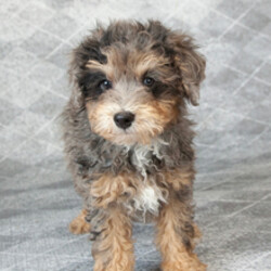 Hi, I'm Paige! I'm a 14-week-old female Bernedoodle. My dad is a Bernedoodle and my mom is a Poodle. I have a beautiful blue merle & tan coat, and I was born on December 27. I am ready now to plan my trip to my forever family. My little paws are ready to make big imprints on your heart.