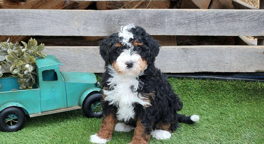 Ian is a well socialized Miniature Bernedoodle puppy who loves to play! This sweet boy is affectionate and oh so cuddly! He will be your adoring companion! Ian has been seen by a vet and is up to date on shots and de-wormer. He also comes home with a 30 day health guarantee plus an extended genetic health guarantee, both provided by the breeder. Ian is ready to meet you!